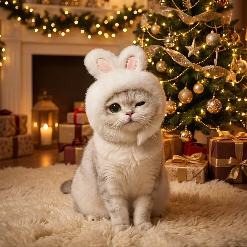 Bunny Ears Cat Hat – Soft Fluffy Costume for Cute Photos