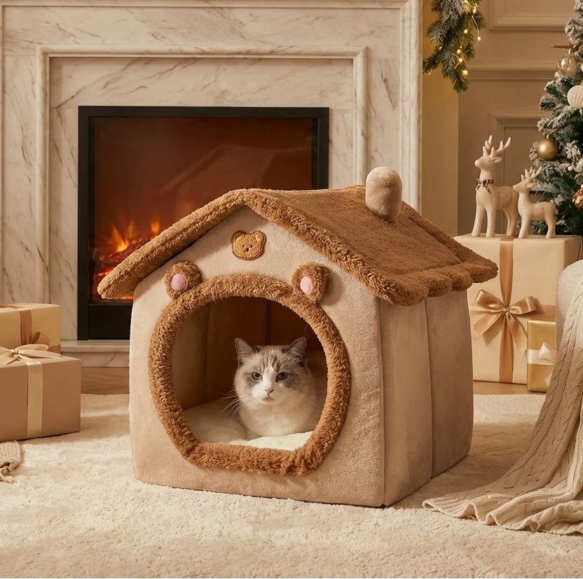 Cat House Bed – Enclosed, Cozy & Washable Cave for Comfortable Sleep