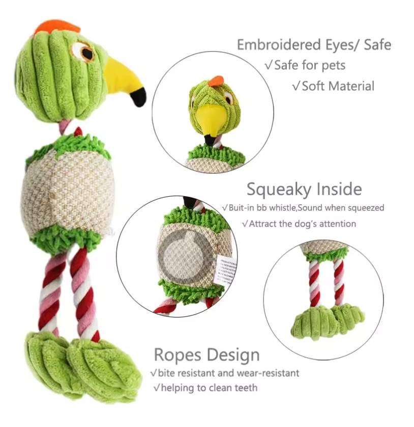 Plush Bird Dog Toy – Squeaky Chew Rope for Dogs