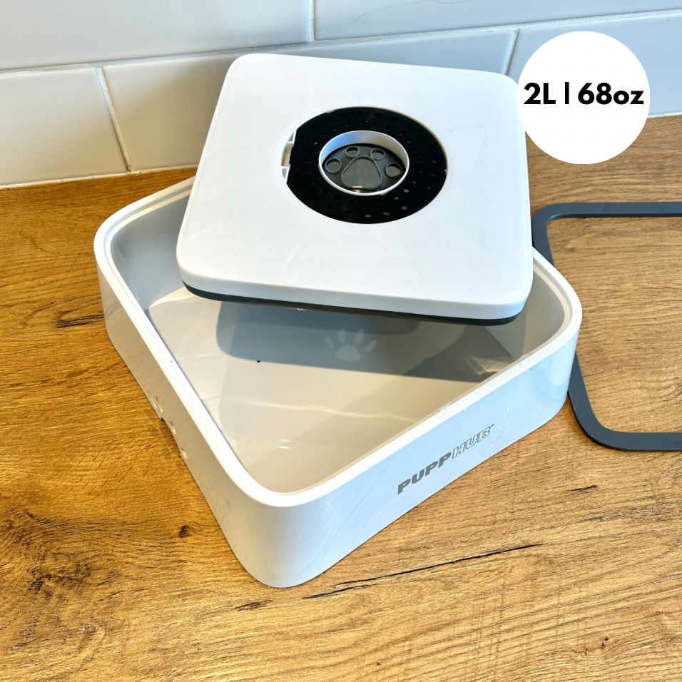 Your dog drinks naturally using the back of their tongue, just like from a puddle. This reduces choking, vomiting, and prevents paw-dipping.